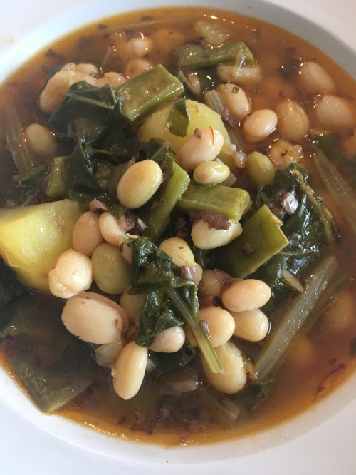 Alubias pochas con verduras y morcilla de Alcoy