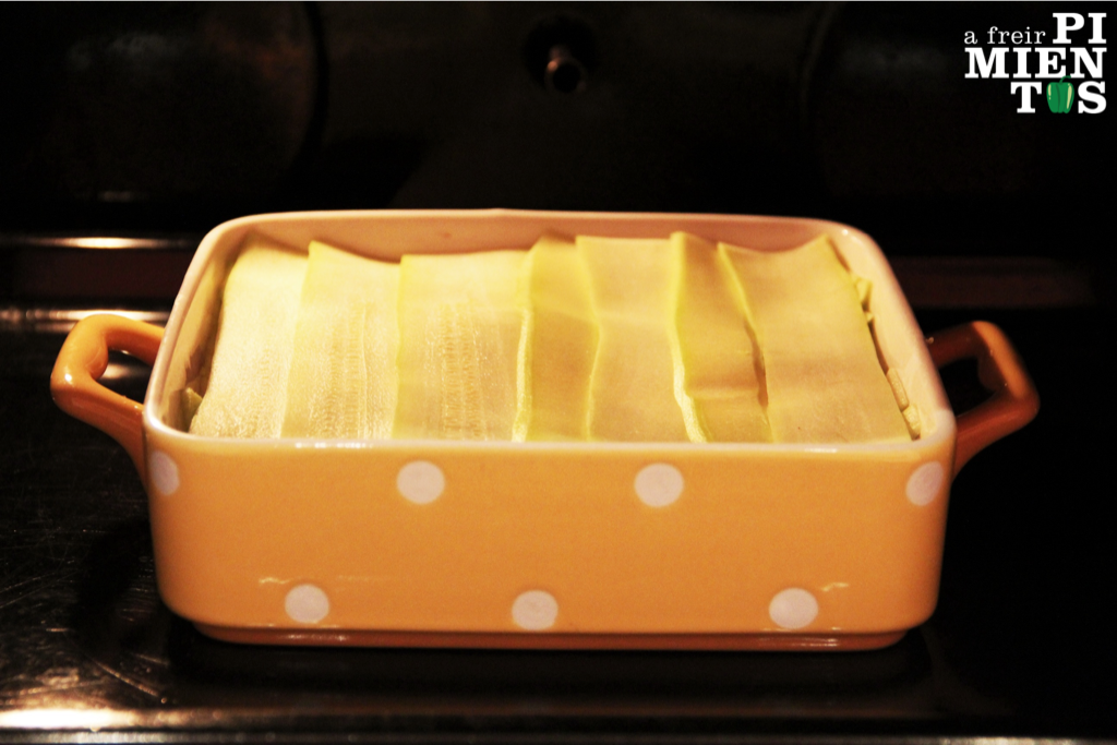 Tapamos con otras dos capas de calabacín. Si nos sobra calabacín podemos perfectamente añadirlo en otra capa.