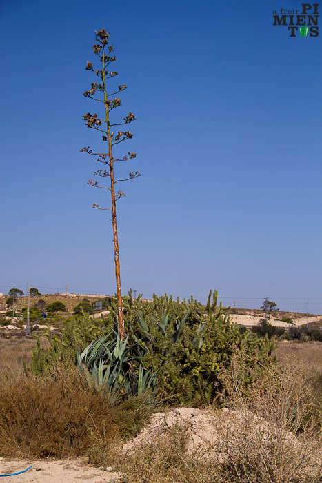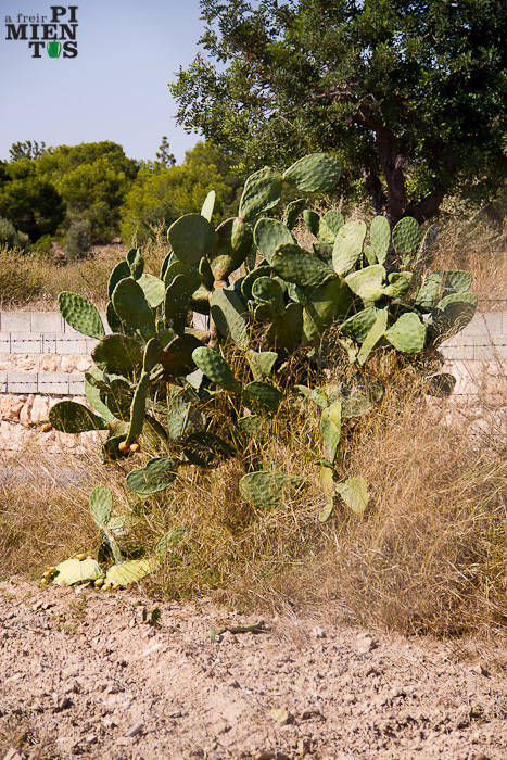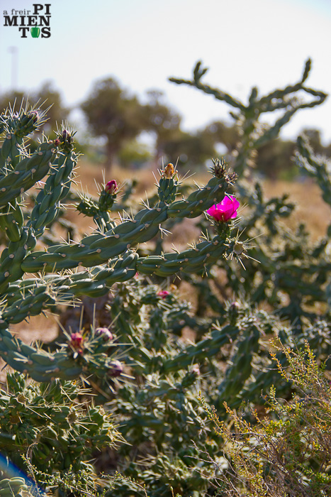 Por toda la zona levantina crecen en veredas, caminos, entradas a fincas y terrenos baldíos cercanos al litoral agaves, chumberas o paleras y otro cactus con frutos similares (que yo sepa no comestibles) del género cylindropuntia. Crecen a su antojo, sin cuidados, descuidados, decandentes, sobre sus propios restos, sin llamar en exceso la atención, fundidos perfectamente con el entorno.