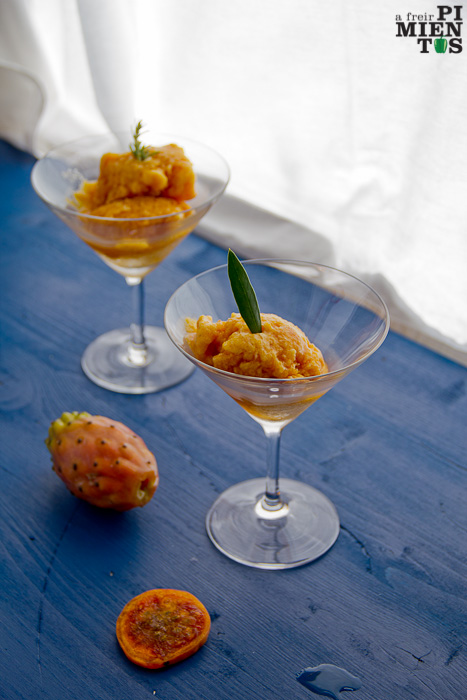 Buena idea el sorbete; Las fotos buenísimas! Una pregunta tonta: cuando quitas los pinchos; has de usar solo la pulpa (con las semillas) o trituras también la piel?