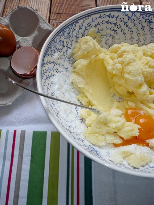 Ponemos la mantequilla en un bol y la trabajamos con el tenedor. Con la mantequilla debemos tener cuidado, la textura ha de ser la de una crema dura de lo contrario puede que se nos corte.