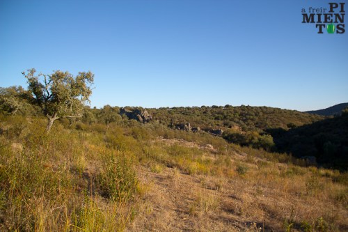 Extremadura tiene un paisaje precioso, cuanto más voy más me gusta. Monte, jaras, dehesas, encinas y alcornoques, roca,… naturaleza en estado puro.