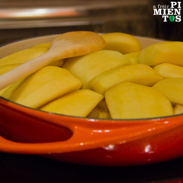 Para hacer la tarta necesitaremos, preferentemente, un recipiente que podamos poner al fuego y luego hornear. Yo como os he contado me dí el capricho pero podéis rebuscar alguna cazuela o similar teniendo cuidado de que no lleve piezas de plástico que se estropearían en el horno. También es factible caramelizar la manzana en una sartén y luego pasarla a otro recipiente apto para el horno: de cristal, barro, o lo que tengáis más a mano.