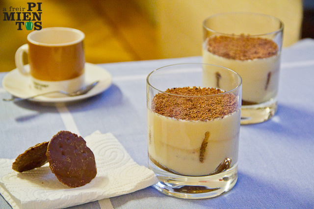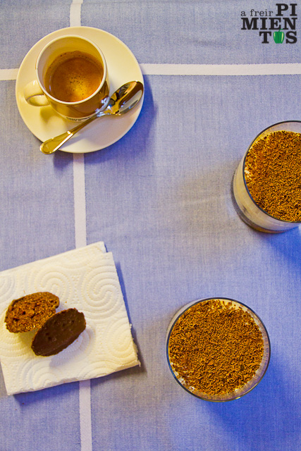 Puntualizaciones sobre los ingredientes: para el café yo utilicé unos 6 Nespressos; al hacerlo en vasos utilicé medio bizcocho de soletilla por capa y algún recorte para rellenar (10 en total); utilicé Grand Marnier en lugar de Marsala que es lo que cualquier pureta que se precie utilizaría; en lugar de cacao en polvo usé chocolate puro rallado.