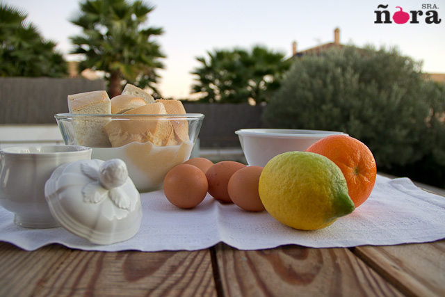 Cortamos el pan en trozos y lo dejamos empapar en la leche fria, que habremos aromatizado con la canela, durante 20 minutos. A continuación, removemos con un tenedor para conseguir una mezcla homogénea y añadimos la ralladura de limón y naranja.