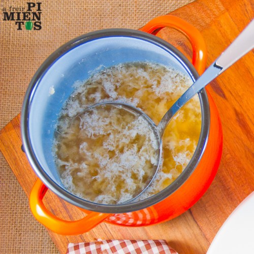 Limpiamos la carne de pavo de plumas y cañones si fuera necesario. Ponemos a cocer el pavo con las verduras habituales para hacer caldo, unos ajos, laurel, unas bolas de pimienta y sal. Cocer en olla pronto (me encanta este nombre para la olla rápida o express) durante unos 25-30 minutos. El punto es que esté cocido pero no en exceso.