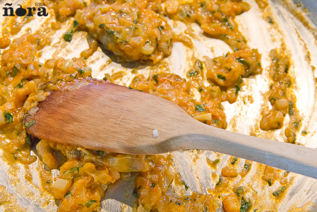 En esta receta es importante que no haya caldo en exceso y para ello lo iremos incorporando según sea necesario.