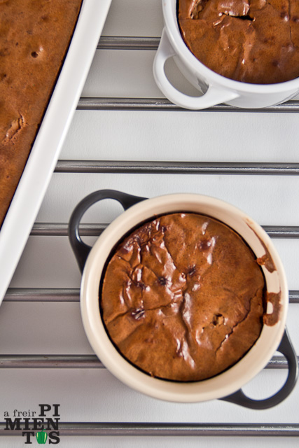 • Buenas! Si es curioso… Al ser menos «pesado» que el tradicional le va el chocolate muy amargo… La presentación, a decir verdad, está hecha ad hoc para el post. El grueso del brownie lo hice en una bandeja y luego la corté en porciones, como es habitual. Las mini cocottes las reserve para probarlo en casa y hacer las fotos. Un abrazo.