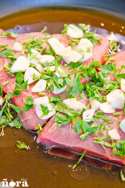 Este atún lo ha hecho siempre Manuel, es una receta que hacía su madre y que está extraordinario. Apenas desvirtuamos su sabor con salsas u otras manipulaciones y por otro lado los tiempos de cocción son muy breves.