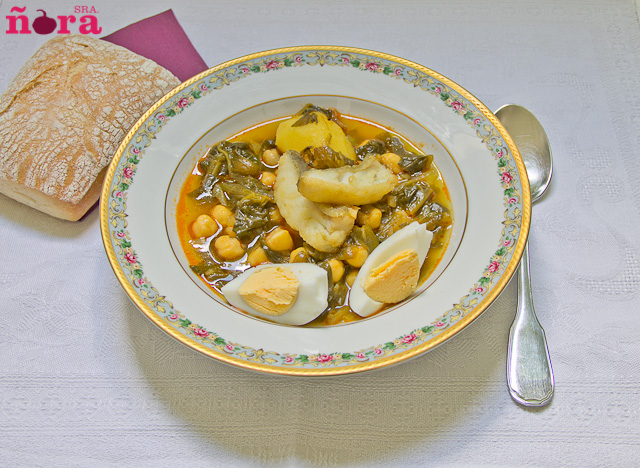 Hoy,  con la  finalidad  de comer legumbres, lo hemos rescatado del olvido y lo hemos preparado con garbanzos. Este plato que os comento era uno de los típicos de la «cuaresma»  en  casa de mis padres. Hoy creo que no debemos esperar a ocasiones especiales para degustarlo cuando nos apetezca.
