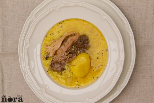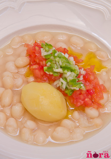 Hoy, recordando una de esas recetas sencillas que le gustaba hacer a mi madre he rescatado este guiso. He buscado si había algo parecido entre mis libros y no he encontrado nada tan sencillo y tan rico. Como estamos en verano podemos tomarlo un poco tibio a modo de entrante.
