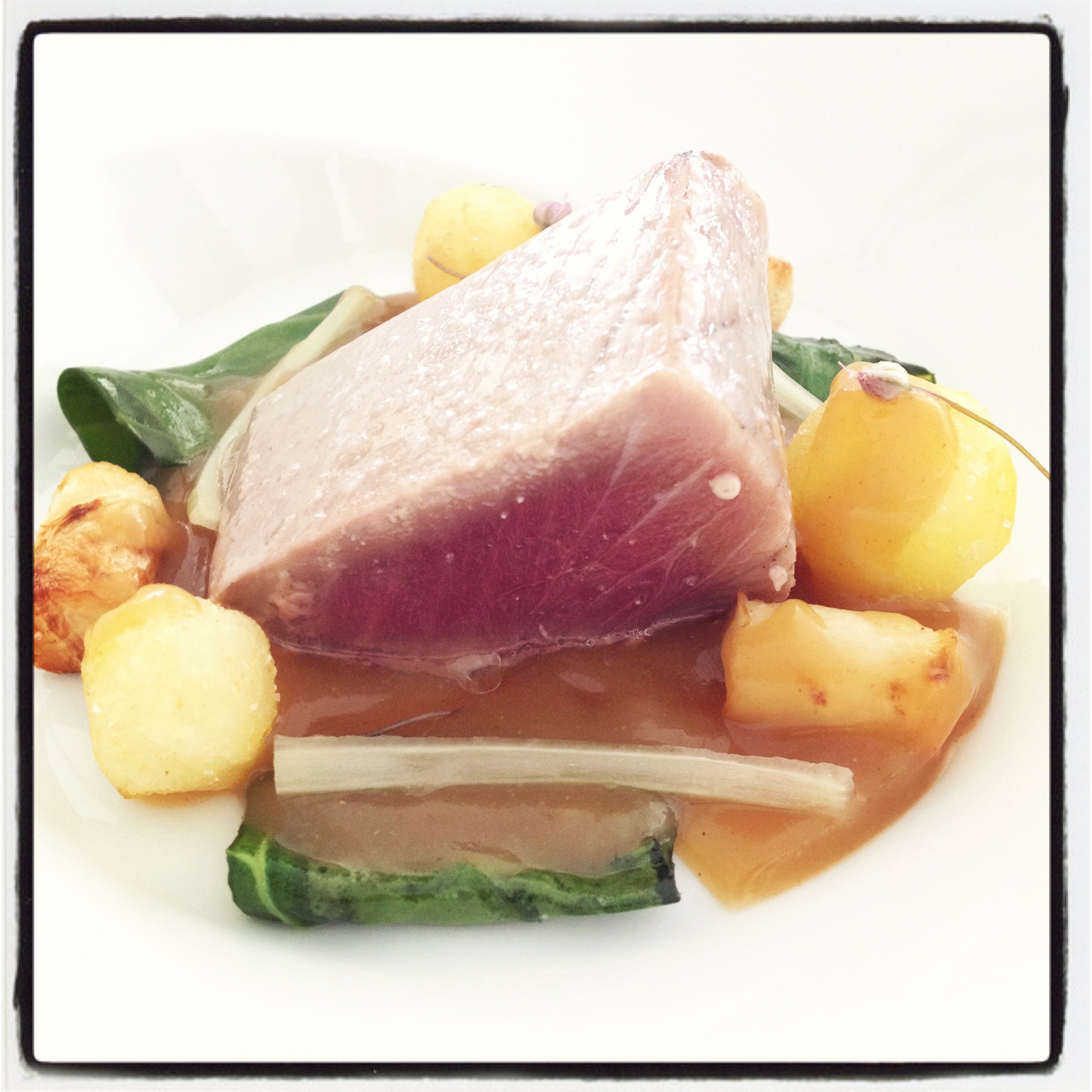 Estupendo el Pan negro, anguila y micro zanahorias. Impresionante la Royal de apio, ajos tiernos, aceite de guindilla y chopitos (2009); muy elegante y equilibrado con un sutil contrapunto ligeramente picante. Quizá uno de los más sorpendentes, la Cigala a la sal, guacamole, aceituna negra y leche de almendras (2010): soberbio. Fresco y delicado Mercado en el plato (2008), un plato muy de mi gusto personal y muy estético. Impecable el Bonito pochado bañado en suquet de sus espinar y tubérculos de antaño (2012). Sabrosísima la Paletilla lechal tostada con cous cous moriscos y nabo blanco (2011), crujiente, punto de cocción perfecto y acertada escolta.