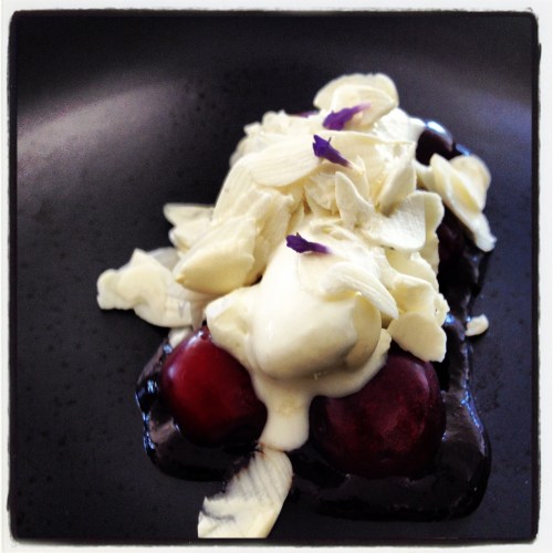 Los postres ambos muy elegantes, en perfecta sintonía con todo el discurso anterior: Calabaza asada con sus pipas y crema helada de vinagre (2010) y Cerezas al natural con almendras dulces y amarga (2011). Muy de nuestro gusto: naturales, originales y poco dulces.