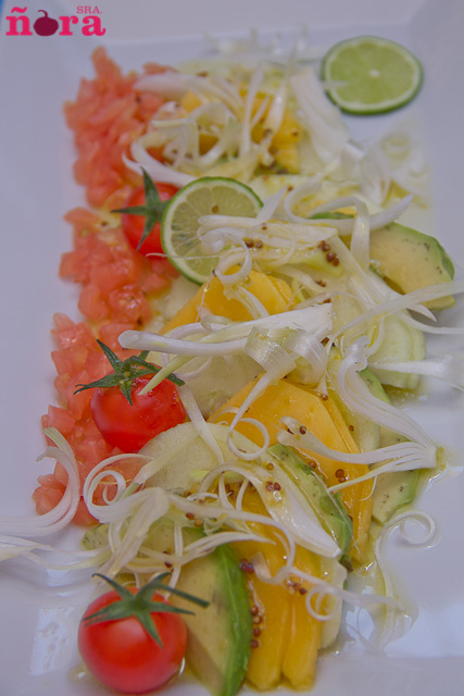Primero vamos preparando cada uno de los ingredientes y los reservamos para montar la ensalada. Es importante cortar los ingredientes del mismo grosor; queda mas bonito.