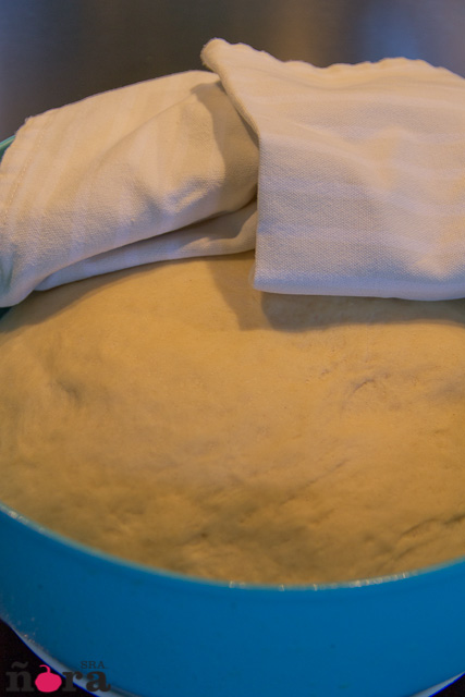 Pasado este tiempo estiramos la masa, le damos la forma del recipiente que previamente habremos untado con mantequilla y harina, la doblamos  y la colocamos en el fondo del molde donde volverá a fermentar durante una hora en las mismas condiciones de temperatura y humedad anteriormente descritas.