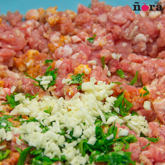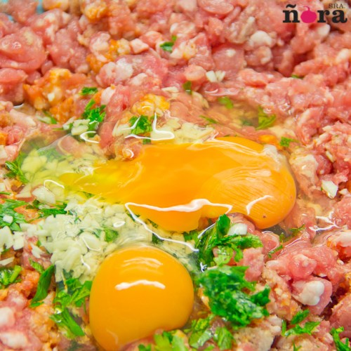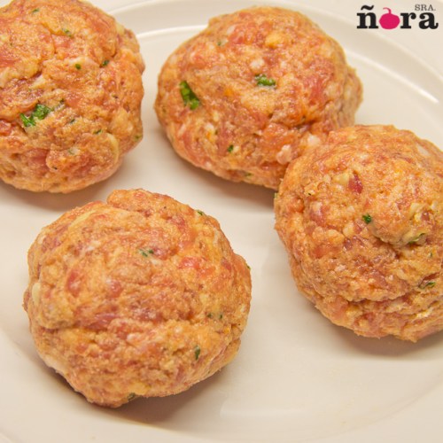 6.- Elaboramos las pelotas del grosor que nos guste con el hueco de la mano sin apretar mucho. Hay que tratarlas con mucho mimo para que estén jugosas.