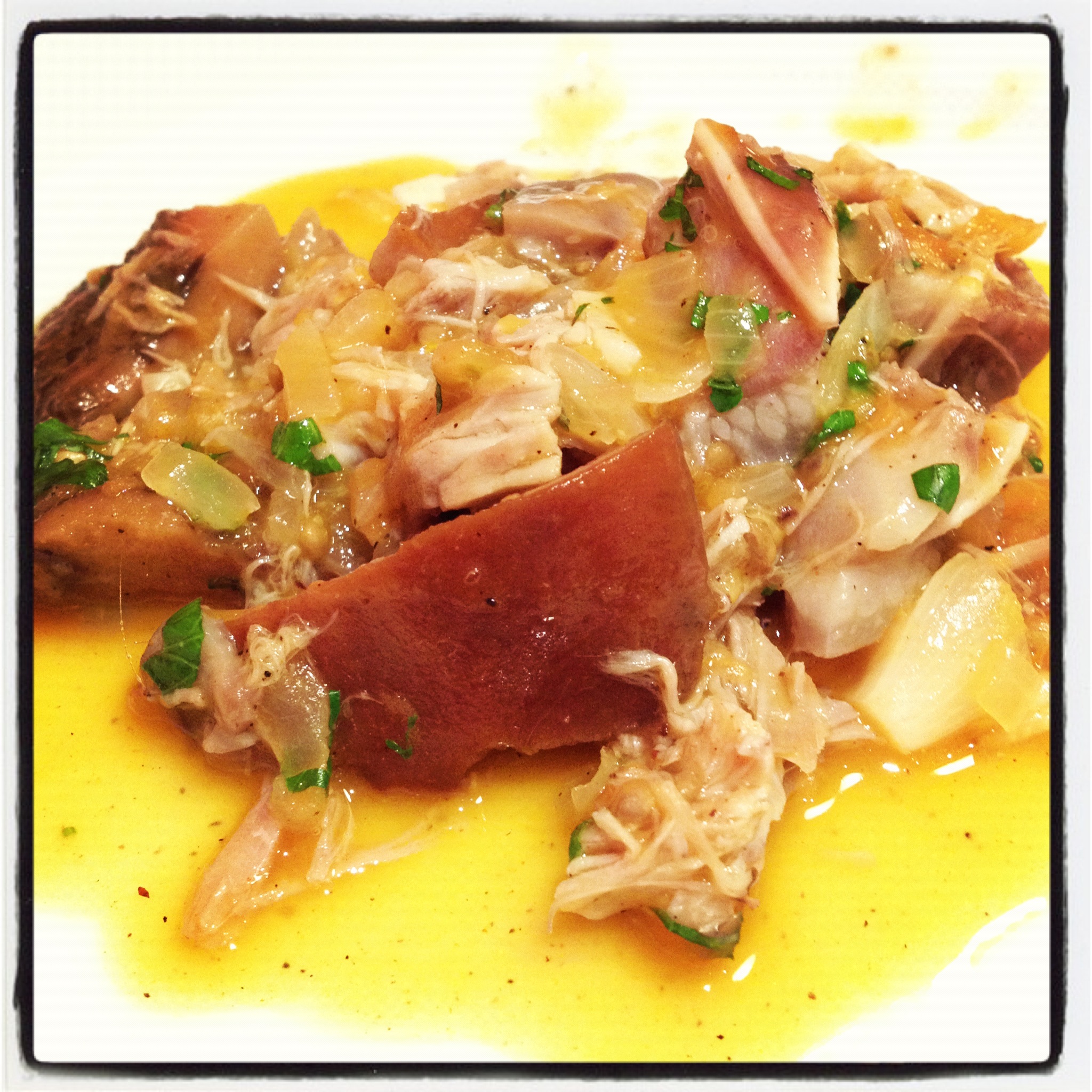 Hay muchas cocinas, producto excelso, tradicional, más o menos elaborada, vanguardista… Me gustan todas, pero cuando de algo sencillo, tan sencillo -y casi olvidado- como unas manos, rabos, oreja y cara de cerdo consigues relamerte y disfrutar como un enano parece que la cocina es magia, cocina con mayúscula.
