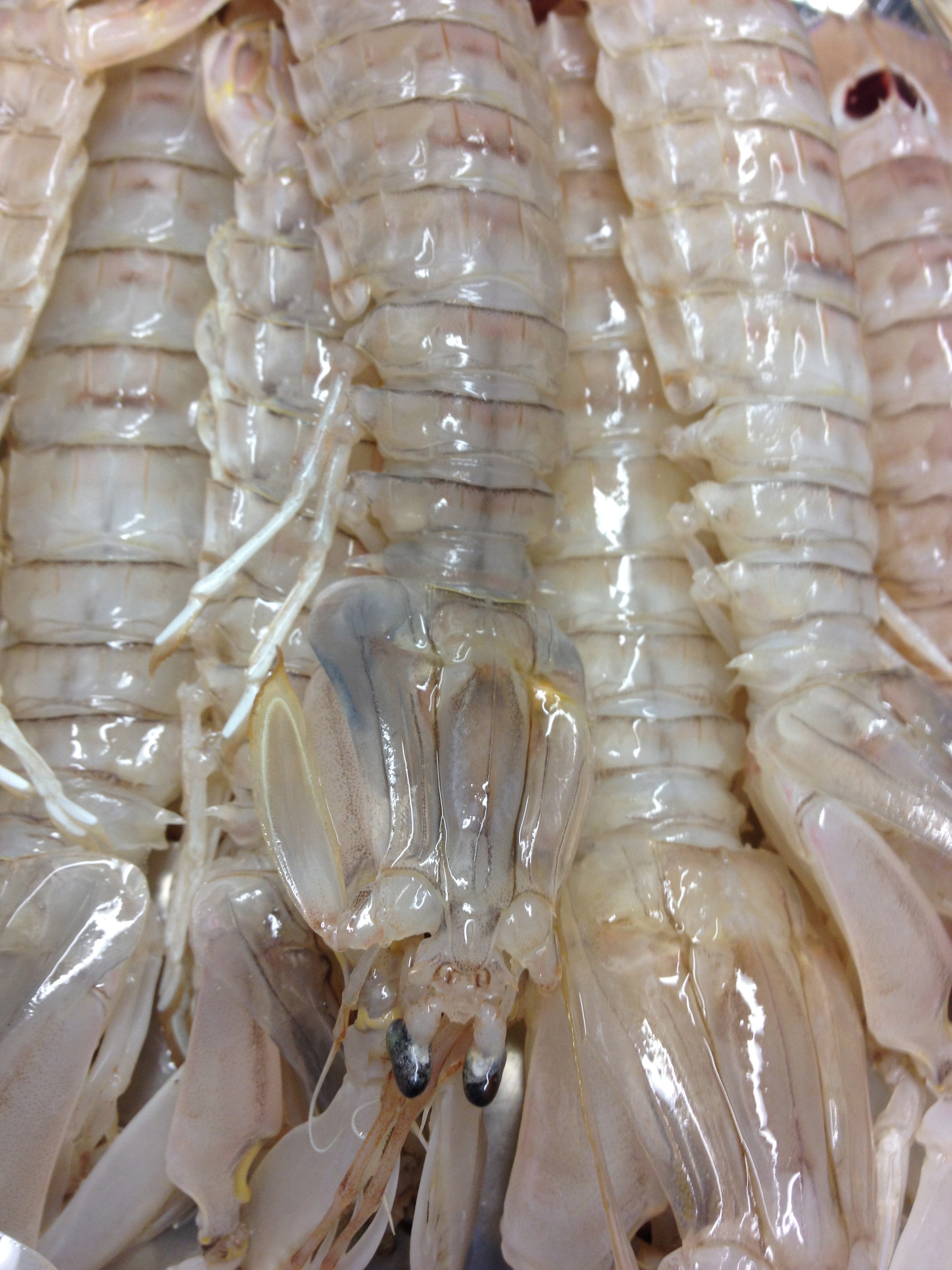 La galera, esquilla mantis, es un crustáceo muy habitual en toda la costa mediterránea y sobre todo en la zona de la comunidad Valenciana, aquí la flota pesquera de Santa Pola suele coger muchas en el arrastre. Viven en túneles que practican en fondos arenosos y de fango desde donde controlan a sus presas. He leido que el apelativo de mantis hace referencia al parecido depredador con el insecto.