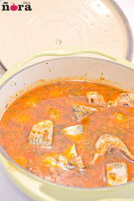 Para elaborar este guiso marinero es importante partir de un buen fondo de pescado pues de lo contrario nos saldría un caldo muy aguado y con poca sustancia. La receta que he hecho es del libro de «La cocina de la familia» de F. Adriá con unos pequeños toques personales.