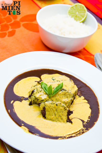 Bajo este nombre algo ridículo, y que alguien podría tildar de pretencioso, no hay más que un curry y unas carrilleras de toda la vida. El caso es que se me ocurrió así: manteniendo la salsa de toda la vida y un curry; sin mezclarlas en el plato. De ahí el nombre.