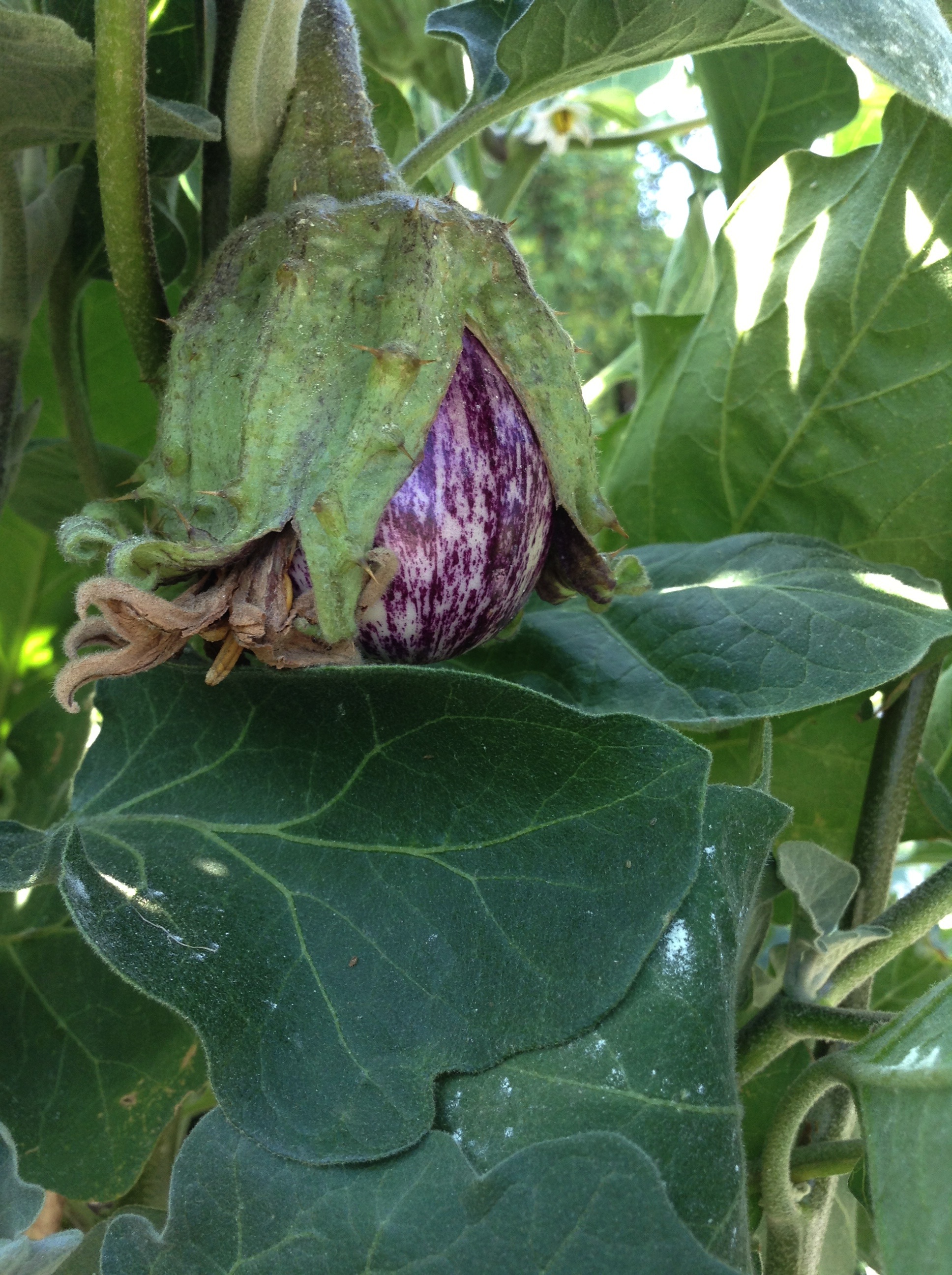 Según he leído, la berenjena primitiva tenía el tamaño y el color de un huevo de gallina y las variedades que existen en la actualidad se han desarrollado a partir de esa berenjena huevo.