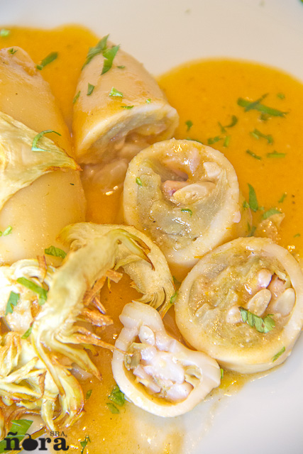 Llevaba tiempo queriendo elaborar esta receta de calamar con alcachofas y por fin hoy a visto la luz; me gustan los calamares y rellenos son algo delicioso, sobre todo en su tamaño mediano tirando a pequeño porque son mas tiernos y apenas hay que cocinarlos.