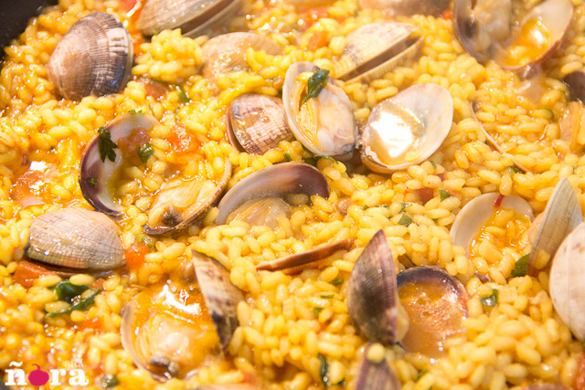 Tardaremos unos 18 o 20 minutos en guisar este fantástico arroz, durante los 10 primeros mantener el fuego fuerte y a partir de aquí bajarlo a la mitad y cuando falten los últimos 8 añadimos añadimos las almejas.