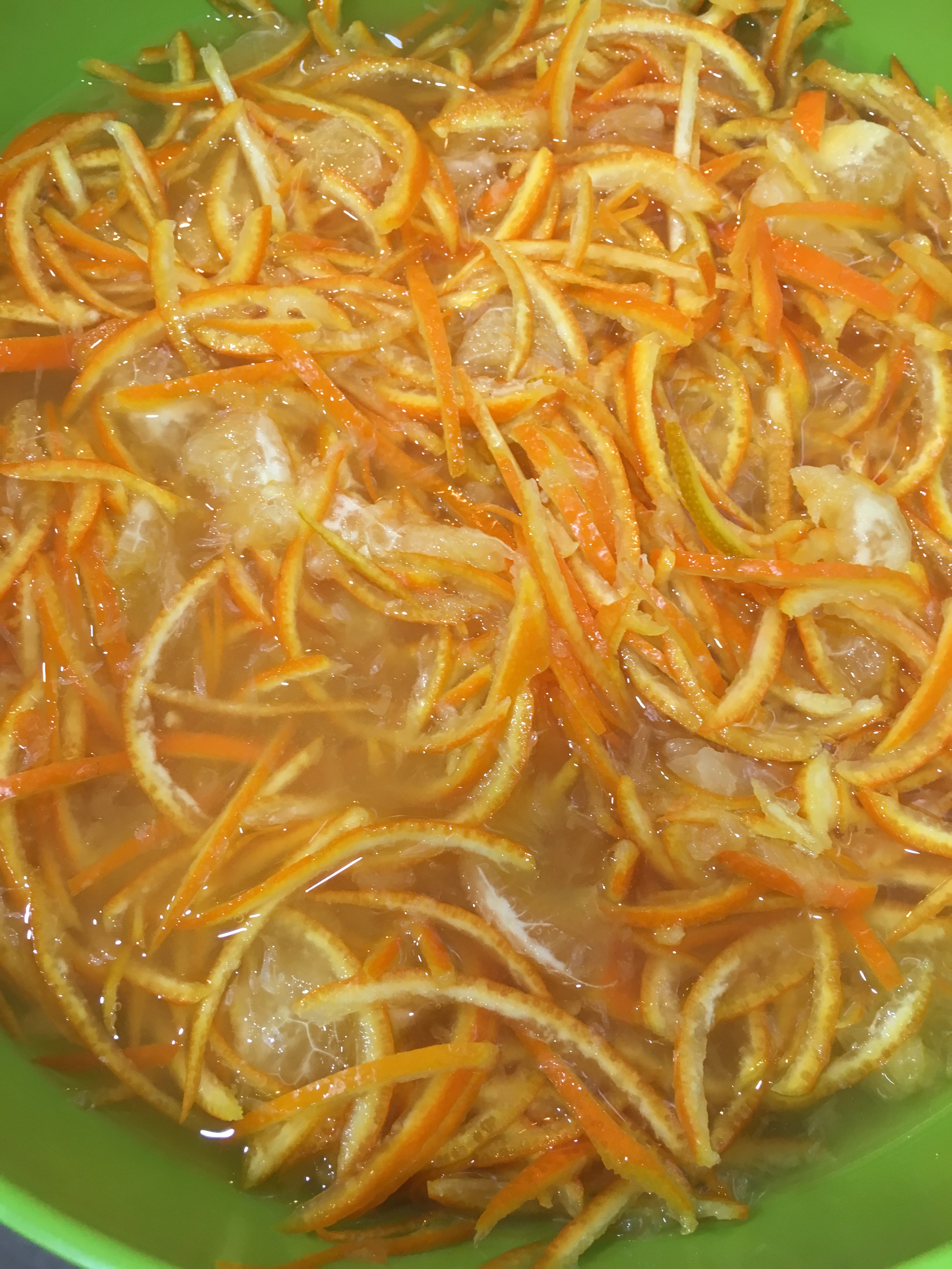- Lavar bien las naranjas y pelarlas guardando las pieles.