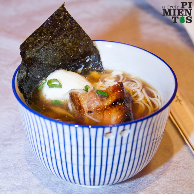 Fueron muchos los platos que me traspasaron y uno de los que más la Royal de Apio; si no recuerdo mal, el primero del menú. Al fondo la royale de apio, un caldo de calamar (o eso diría) muy muy sabroso, unos chopitoss y unas gotas de de aceite de guindilla. Un plato sencillamente espectacular.